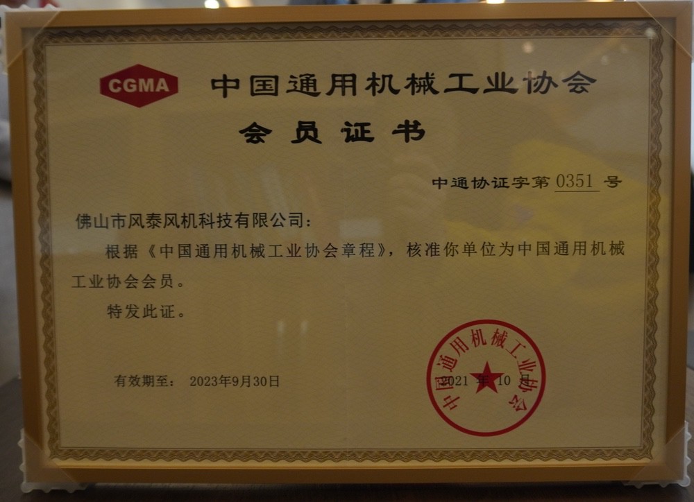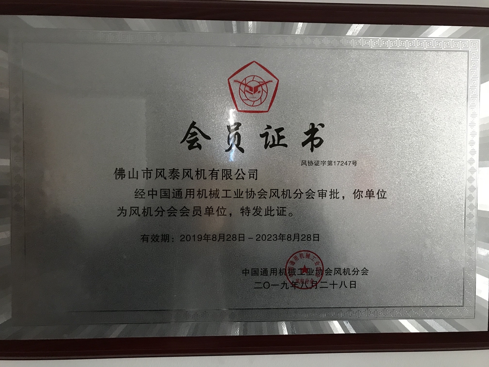 Membership Certificate of Fan Branch of China General Machinery Industry Association
