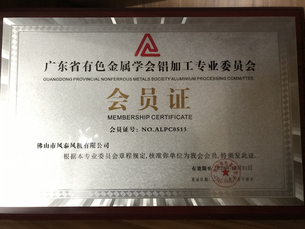 Membership Certificate of the Aluminum Processing Academic Committee of Guangdong Nonferrous Metals Society