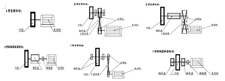 點擊藍(lán)字 關(guān)注我們 1 風(fēng)機(jī)是用于輸送氣體的機(jī)械,從能量觀點看,它是把原動機(jī)的機(jī)械能轉(zhuǎn)變?yōu)闅怏w能量的一種機(jī)械。而風(fēng)機(jī)是對氣體壓縮和氣體輸送機(jī)械的習(xí)慣性簡稱。 1.風(fēng)機(jī)的定義 簡單來說,風(fēng)機(jī)是依靠輸入的機(jī)械能,提高氣體壓力并排送氣體的機(jī)械。 2.風(fēng)機(jī)的原理 把氣體作為不可壓縮流體處理,利用高低壓來控制氣體流量、流向。 3.風(fēng)機(jī)分類 按壓力分類 4.風(fēng)機(jī)主要參數(shù) 壓力 離心通風(fēng)機(jī)的壓力指壓升(相對于大氣的壓力),即氣體在風(fēng)機(jī)內(nèi)壓力的升高值或者該風(fēng)機(jī)進(jìn)出口處氣體壓力之差。它有靜壓、動壓、全壓之分。性能參數(shù)指全壓(等于風(fēng)機(jī)出口與進(jìn)口總壓之差),其單位常用Pa、KPa、mH2O、mmH2O等。 流量 單位時間內(nèi)流過風(fēng)機(jī)的氣體容積的量,又稱風(fēng)量。常用Q來表示,常用單位是;m3/s、m3/min、m3/h(秒、分、小時)。(有時候也用到“質(zhì)量流量”即單位時間內(nèi)流過風(fēng)機(jī)的氣體質(zhì)量,這個時候需要考慮風(fēng)機(jī)進(jìn)口的氣體密度,與氣體成份,當(dāng)?shù)卮髿鈮?氣體溫度,進(jìn)口壓力有密切影響,需經(jīng)換算才能得到習(xí)慣的“氣體流量”)。 一般風(fēng)機(jī)流量的計算用風(fēng)機(jī)出風(fēng)口面積A與風(fēng)機(jī)出風(fēng)口處的風(fēng)速來計算表示為: 轉(zhuǎn)速 風(fēng)機(jī)轉(zhuǎn)子旋轉(zhuǎn)速度。常以n來表示、其單位用r/min(r表示轉(zhuǎn)速,min表示分鐘)。 功率 驅(qū)動風(fēng)機(jī)所需要的功率。常以N來表示、其單位用KW。一般我們常用的風(fēng)機(jī)由于壓力溫度變化較小,所以可不考慮氣體由于溫度、壓力變化所產(chǎn)生的密度變化,可以按照標(biāo)準(zhǔn)狀態(tài)下空氣密度:1.2kg/m3來做計算。 壓力 靜壓Pst:在平直流道中運(yùn)動的氣體于某一截面垂直作用于壁面的壓力。通常為測得值。在某些離心風(fēng)機(jī)樣本里也被稱為真空度。 動壓Pd:該截面上氣體流動速度所產(chǎn)生的平均壓力Pd=ρv2/2。 全壓Pt:同一截面上氣體靜壓、動壓之和稱為氣體全壓,風(fēng)機(jī)進(jìn)出口氣體全壓之差稱為風(fēng)機(jī)全壓,即:Pt=Pst+Pt。 靜壓比:在管道設(shè)計的水力計算中,要考慮管道的阻力損失,管道中風(fēng)速越大,阻力損失就越大,能量衰減越快,所以對于風(fēng)機(jī)來講,靜壓比是個非常重要的量值,表示為η=Pst/Pt。 功率 有效功率Pe:風(fēng)機(jī)所輸送氣體在單位時間內(nèi)從風(fēng)機(jī)獲得的有效能量:Pe=Pt×Q/1000[kW] 式中:Pt[Pa],Q[m3/s] 軸功率Psh:單位時間內(nèi)原動機(jī)傳遞給風(fēng)機(jī)軸上的能量,一般電機(jī)直連的風(fēng)機(jī)軸功率即為電機(jī)功率,如果用皮帶或者其他傳動方式的,要考慮到功率傳遞系數(shù)的影響。 風(fēng)機(jī)效率 風(fēng)機(jī)全壓效率ηt:風(fēng)機(jī)全壓有效功率與風(fēng)機(jī)軸功率之比:ηt=Pet/Psh=Pt×Q/1000/Psh 風(fēng)機(jī)靜壓效率ηs:風(fēng)機(jī)靜壓有效功率與風(fēng)機(jī)軸功率之比:ηt=Pes/Psh=Pst×Q/1000/Psh 風(fēng)機(jī)轉(zhuǎn)速n:單位:r/min或rpm 作用:風(fēng)機(jī)所有性能參數(shù)均將隨轉(zhuǎn)速的變化而變化 常用的電機(jī)轉(zhuǎn)速計算公式:n=120f/p n為轉(zhuǎn)速,f為電源頻率,P為電機(jī)極數(shù)(常見2、4、6、8、10) 電機(jī)直連風(fēng)機(jī)的轉(zhuǎn)速為電機(jī)轉(zhuǎn)速,可通過改變電源頻率改變風(fēng)機(jī)轉(zhuǎn)速。若是皮帶傳送可根據(jù)調(diào)節(jié)原、被動皮帶輪直徑比例改變風(fēng)機(jī)轉(zhuǎn)速。 下圖中就是主要的測試風(fēng)壓的參數(shù): 如上圖所示,Pt1測試值為進(jìn)風(fēng)口全壓,Pt2為出風(fēng)口全壓,則風(fēng)機(jī)全壓Pt=Pt2-Pt1。 Ps1為進(jìn)風(fēng)口靜壓,Ps2為出風(fēng)口靜壓,則風(fēng)機(jī)靜壓為Ps=Ps2-Ps1。 風(fēng)機(jī)動壓一般為Pd=0.5ρv2,所以一般測量出風(fēng)速v,則動壓可得。 風(fēng)量的得出也是通過計算得出Q=A*v,A為風(fēng)機(jī)出風(fēng)口面積。 風(fēng)機(jī)的噪音也是測試得出,一般在距離出風(fēng)口1米,下方45°角放置測試儀,然后得出頻譜圖,最后得出風(fēng)機(jī)的實際噪音。當(dāng)然風(fēng)機(jī)噪音也可以通過風(fēng)機(jī)流量、壓力估算得出,這個會在后面詳細(xì)講到。 相似風(fēng)機(jī)性能參數(shù)換算: 假設(shè)某型風(fēng)機(jī)參數(shù)分別為: 流量Q,壓力P,功率N,轉(zhuǎn)速n,效率η。 需換算風(fēng)機(jī)參數(shù): 流量Qm,壓力Pm,功率Nm,轉(zhuǎn)速nm,效率ηm,則二者之間的換算關(guān)系如下: 5.結(jié)構(gòu)簡介 風(fēng)機(jī)命名規(guī)則 風(fēng)機(jī)轉(zhuǎn)子旋轉(zhuǎn)速度。常以n來表示、其單位用r/min(r表示轉(zhuǎn)速,min表示分鐘)。 風(fēng)機(jī)旋向介紹:風(fēng)機(jī)可制成順轉(zhuǎn)或逆轉(zhuǎn)兩種型式:從電機(jī)一端正視,如葉輪按順時針方向旋轉(zhuǎn)稱順旋風(fēng)機(jī),以“順”表示;按逆時針方向旋轉(zhuǎn)稱逆風(fēng)機(jī),以“逆”表示。 風(fēng)機(jī)的出口位置以機(jī)殼的出口角度表示:“順”、“逆”均可制成0°、45°、90°、135°、180°、225°共六種角度,也可按用戶的要求制成其他。 風(fēng)機(jī)出風(fēng)口:規(guī)定